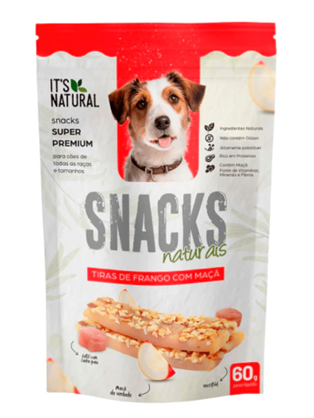 Petisco It´s Natural Snacks Naturais Tiras de Frango com Maça Cães Adultos - 60g