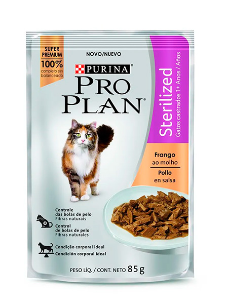 Ração Úmida Nestlé Purina Pro Plan Sterilized Sachê Sabor Frango ao Molho para Gatos Castrados - 85g